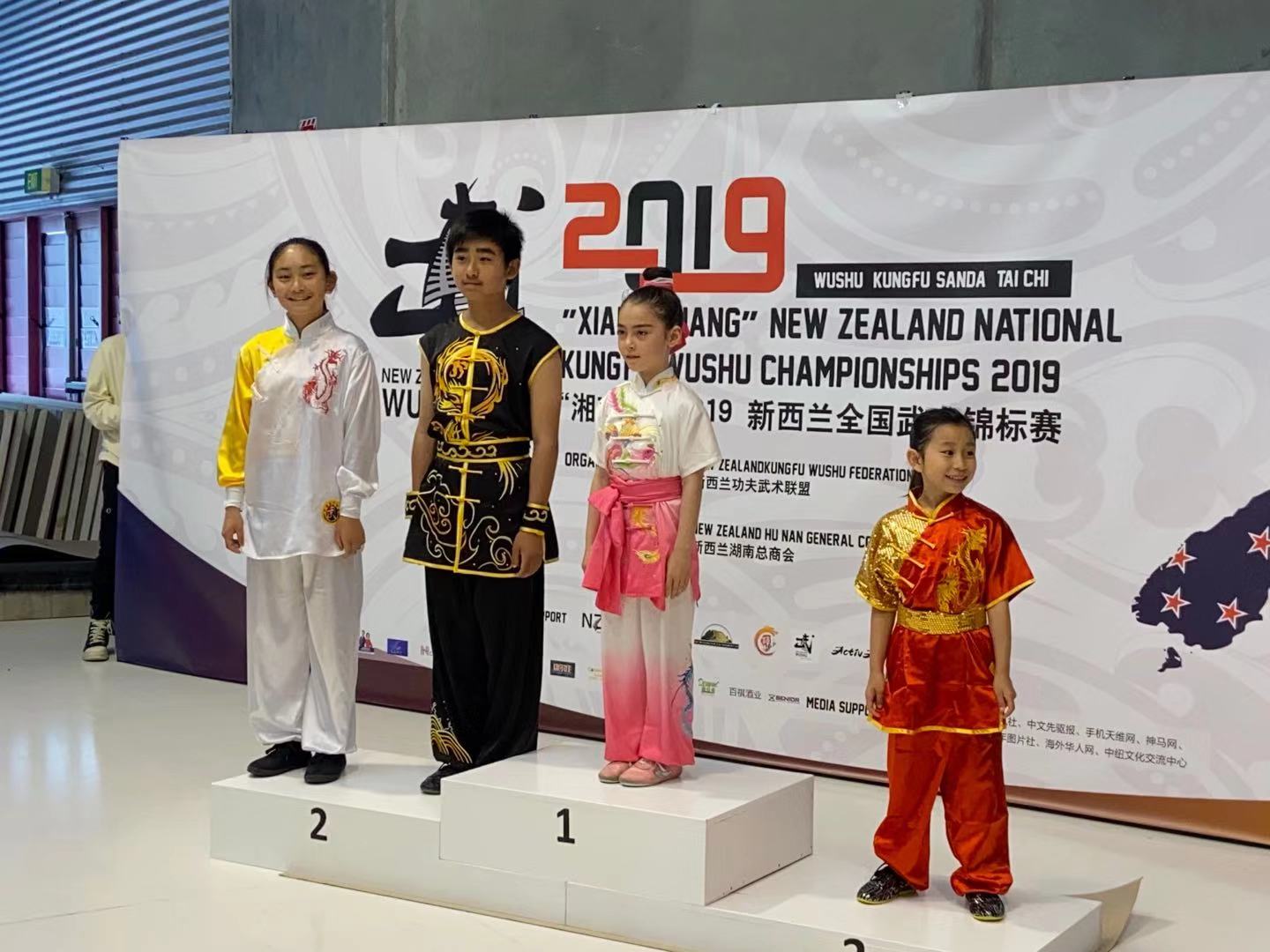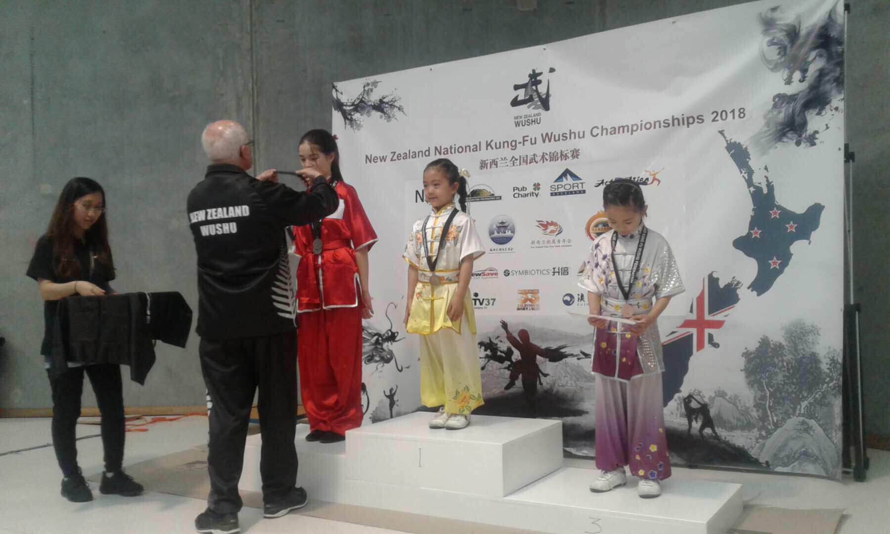 New Zealand Wu Shu Championships 2018. There are 10 individual items and 1 group item. Our team got 4 gold medals,4 silver and 7 bronzes.